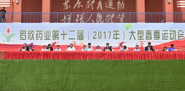 5月6日,罗欣集团隆重举行第十二届春季运动会,集团及各分厂副总经理以上人员在主席台就坐。开幕式上,股份集团总经理高级助理、恒欣药业董事宋丽丽代表集团公司向大会致辞,随后股份集团副总经理、集团工会主席韩风生作重要讲话并宣布罗欣集团第十二届春季运动会开幕,来自生产、科研、销售、后勤服务等岗位的十二支方队的1000多名员工参加了此次运动会。