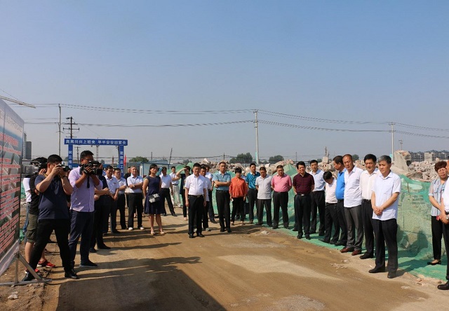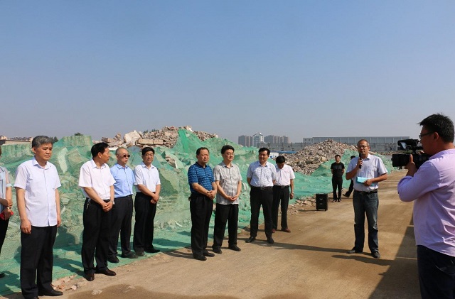 上图为罗庄区人大常委会主任魏九成一行参观集团创新产业园施工现场时的情景