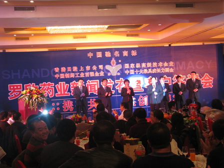 罗欣集团借全国药品交易会召开之际,在成都凯宾斯基大酒店举行“新闻发布暨客户答谢会”。来自全国各地的供销商、经销商、医药界同仁600多人参加了发布会。会上,公司发布了“罗欣”商标获得中国驰名商标、成立国家级集团公司及多个新产品上市等新闻,并对广大客户表达对罗欣一贯支持的感谢之情。