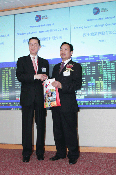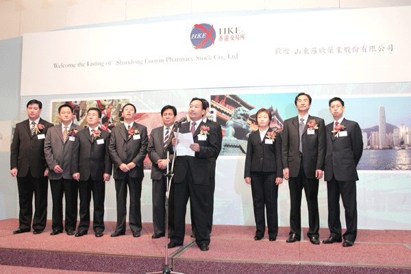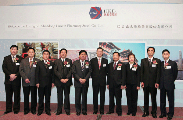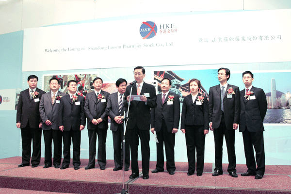 香港联交所行政总裁宣布罗欣药业股票上市