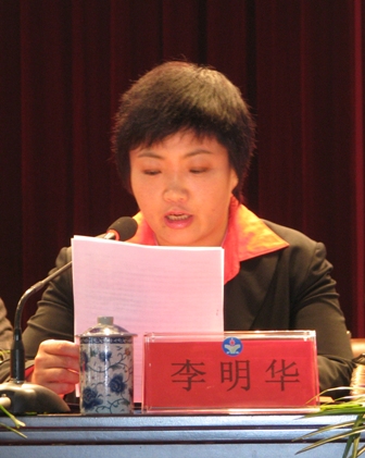 上图为集团副总经理、股份公司董事、总经理李明华宣读对先进个人和集体的表彰决定