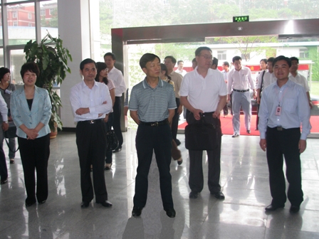 上图为国家统计局工交司副司长周学文(前排左三)一行参观公司展厅时的情景
