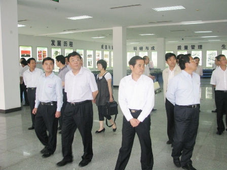 上图为市委常委、常务副市长杜德昌(前排左三)一行参观公司展厅时的情景