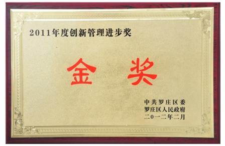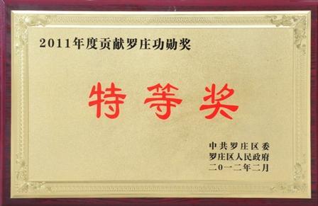 2012年2月6日,罗庄区委区政府隆重召开了全区2011年度工作总结表彰大会,对全区经济社会发展先进单位和先进个人进行了表彰,我公司荣获“2011年度贡献罗庄功勋奖特等奖”、“2011年度创新管理进步奖金奖”和“2011年度发展罗庄建设奖银奖”三个奖项。