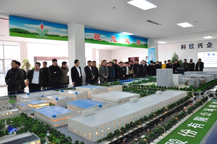 上图为市委党校第三十一期乡镇干部进修班学员一行观看公司布局沙盘模型的情景