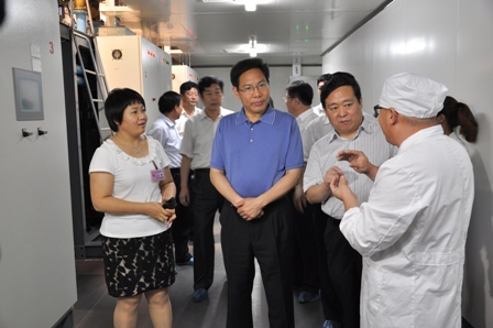 上图为兰山区党政考察团参观裕欣分厂冻干粉针剂生产车间时的情景