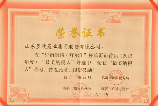罗欣药业坚持“回报社会”的价值观,自觉承担社会责任,向全社会展示了新时代纳税人诚信纳税、回馈社会的良好形象。罗欣药业将继续坚持“回报员工”,“回报客户”,“回报股东”,“回报社会”,“固强企业”的价值观,以“罗欣药业,传递健康”的企业理念,为国家贡献更多的税金,积极参与社会扶弱济贫,为社会安置就业机会,为广大患者治疗和康复提供更多、更好的高科技药品,为发展医药事业,振兴临沂经济做出更大的贡献。